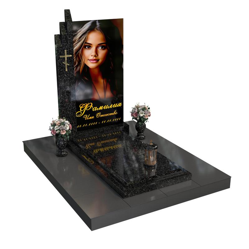 Центральное место в композиции занимает портрет на стекле, который становится визуальным фокусом и хранителем образа ушедшего человека. Прямая вертикаль формы делает памятник выразительным и сосредоточенным, без лишних деталей — строго, сдержанно и достойно.